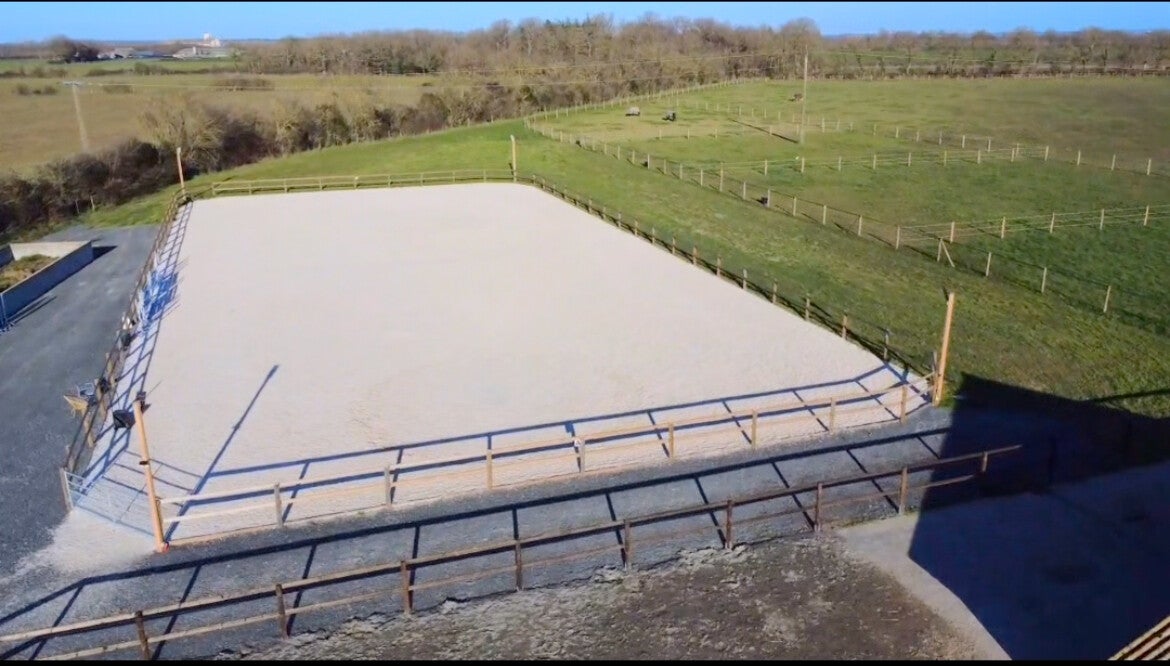 Notre aire stabilisée de plus de 1300m², spécialement conçue pour le bien-être des chevaux en période humide et hivernale afin de garer leurs sabots hors de la boue. Nous avons installé sur cette aire 2 râteliers avec 10 passages de têtes chacun et 2 abreuvoirs isotherme 4 boules. Les chevaux au box pourront sentir et voir les chevaux qui ont accès à l'aire stabilisée.